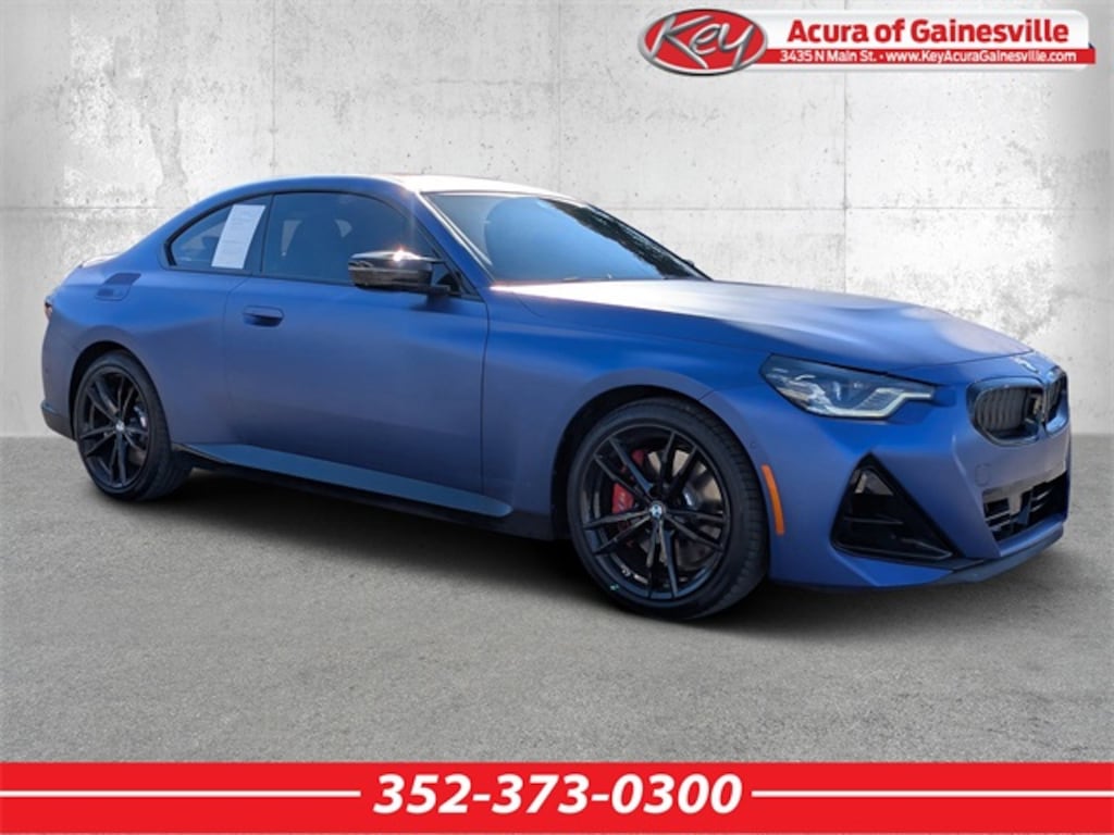 Key Acura of Gainesville is proud to present you with another True Market Priced Pre-Owned Vehicle. Transparent Pricing Of $ 44999 !! This 2024 BMW 2 Series M240i is loaded with the following Factory Options: Connected Package Pro, 10 Speakers, 4-Wheel Disc Brakes, ABS brakes, Active Cruise Control, Active Park Distance Control, Adaptive Full LED Lights, Adaptive suspension, Air Conditioning, Alloy wheels, AM/FM radio: SiriusXM, Apple CarPlay & Android Auto Compatibility, Auto-dimming door mirrors, Auto-dimming Rear-View mirror, Automatic High Beams, Automatic temperature control, BMW Assist eCall, BMW TeleServices, Brake assist, Bumpers: body-color, ConnectedDrive Services, Delay-off headlights, Driver door bin, Driver vanity mirror, Dual front impact airbags, Dual front side impact airbags, Electronic Stability Control, Emergency communication system: BMW Assist eCall, Extended Shadowline Trim, Exterior Parking Camera Rear, Four wheel independent suspension, Front anti-roll bar, Front Bucket Seats, Front Center Armrest, Front dual zone A/C, Front reading lights, Front Sport Seats, Fully automatic headlights, harman/kardon Surround Sound System, Heated door mirrors, Heated Front Seats, Heated Steering Wheel, Hi-Fi Sound System, Illuminated entry, Illuminated M Trim, Knee airbag, Leather Shift Knob, Live Cockpit Pro, Low tire pressure warning, M Shadowline Lights, M Sport Brakes w/Red Calipers, Memory seat, Navigation, Navigation System, Occupant sensing airbag, Outside temperature display, Overhead airbag, Panic alarm, Parking Assistant Plus, Passenger door bin, Passenger vanity mirror, Perforated Sensatec Upholstery, Power door mirrors, Power driver seat, Power Front Seats, Power moonroof, Power passenger seat, Power steering, Power windows, Radio data system, Radio: AM/FM Audio System, Rain sensing wipers, Rear air conditioning, Rear anti-roll bar, Rear window defroster, Rear-View Camera, Remote keyless entry, Security system, SiriusXM Satellite Radio, Speed control, Speed-sensing steering, Speed-Sensitive Wipers, Split folding rear seat, Spoiler, Sport steering wheel, Steering wheel mounted audio controls, Surround View w/3D View, Tachometer, Telescoping steering wheel, Tilt steering wheel, Traction control, Trip computer, Turn signal indicator mirrors, Universal Garage-Door Opener, Variably intermittent wipers, Wheels: 19" x 8 M Double-Spoke Bi-Color, Wheels: 19" x 8 M Double-Spoke Jet Black, Widescreen Display, and Wireless Device Charging!!