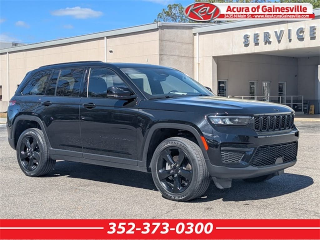 Key Acura of Gainesville is proud to present you with another True Market Priced Pre-Owned Vehicle. Transparent Pricing Of $ 28499 !! This 2023 Jeep Grand Cherokee Altitude is loaded with the following Factory Options: Altitude Appearance Package, Quick Order Package 23B Altitude (115V Auxiliary Power Outlet, Black Headliner, Capri Leatherette/Suede Seats, Delete Laredo Badge, Gloss Black Exterior Accents, Heated Front Seats, Heated Steering Wheel, Molded In Color Black/Gloss Black Roof Rails, Power Liftgate, Rain Sensitive Windshield Wipers, Remote Start System, Selectable Tire Fill Alert, Wheels: 18" x 8" Fully Painted Aluminum 1, and Wireless Charging Pad), 3.45 Rear Axle Ratio, 4-Wheel Disc Brakes, 6 Speakers, ABS brakes, Air Conditioning, Alloy wheels, Anti-whiplash front head restraints, Automatic temperature control, Brake assist, Bumpers: body-color, Cloth Seats, Compass, Delay-off headlights, Driver door bin, Driver vanity mirror, Dual front impact airbags, Dual front side impact airbags, Electronic Stability Control, Emergency communication system, Four wheel independent suspension, Front anti-roll bar, Front Bucket Seats, Front Center Armrest w/Storage, Front dual zone A/C, Front License Plate Bracket, Front reading lights, Fully automatic headlights, Heated door mirrors, Illuminated entry, Knee airbag, Low tire pressure warning, Normal Duty Suspension, Occupant sensing airbag, Outside temperature display, Overhead airbag, Overhead console, Panic alarm, ParkView Rear Back-Up Camera, Passenger door bin, Passenger vanity mirror, Power door mirrors, Power driver seat, Power steering, Power windows, Radio data system, Radio: Uconnect 5 w/8.4" Display, Rear anti-roll bar, Rear reading lights, Rear window defroster, Rear window wiper, Remote keyless entry, Security system, Speed control, Speed-Sensitive Wipers, Split folding rear seat, Spoiler, Steering wheel mounted audio controls, Tachometer, Telescoping steering wheel, Tilt steering wheel, Traction control, Trip computer, Variably intermittent wipers, Voltmeter, Wheels: 17" x 6.5" Fully Painted Aluminum, and Wheels: 20" x 8.5" Gloss Black Painted Aluminum!!